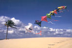 フォルタレーザは、サンパウロから北東に飛行機で3時間半。そこからさらに35km離れたクンブーコ海岸には、白く輝く大砂丘が広がる。海と湖に挟まれた砂丘の背景には、ヤシの木の森が見える。赤道から9度南に位置し、気温は一年中27度。常に吹き続ける風は砂を動かし、まるで生き物のように丘の形状を変えていく。11月17日のオープニングでは、現代舞踊の最高峰を極めた振付家イリ・キリアンが地元の子供たちに素晴しい振付をし、ブラジルのグループ、ワクティは、現地で制作した楽器を演奏して、リズム感溢れる不思議な音楽を創り出した。最終地ブラジルでのウインドキャラバンは、この豪華で楽しいコラボレーションで始まった。2週間の会期中、焼ける様な砂丘の会場に沢山の人々が来て下さった。地元の小学生達とは、ワークショップをしたりして、すっかり仲良し