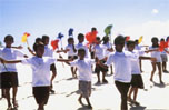 | 11月27日、出演してくれた子供達をクンブーコの小学校に訪ね、海岸に流れ着いた木切れや空ビンでオブジェを作ってもらった。何人かの子供達はウインドキャラバンの印象を絵に描いてくれた。