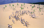 | ブラジルのグループ、ワクチが、現地で制作したユニークな楽器を演奏しながら砂丘の奥から現われる。イリ・キリアンが振付けた地元の子供たち50人は、手に手に風ぐるまを持って砂の斜面を一斉に降りてくる。幻想的な光景と不思議な音楽に、観客は息を呑んだ。 |